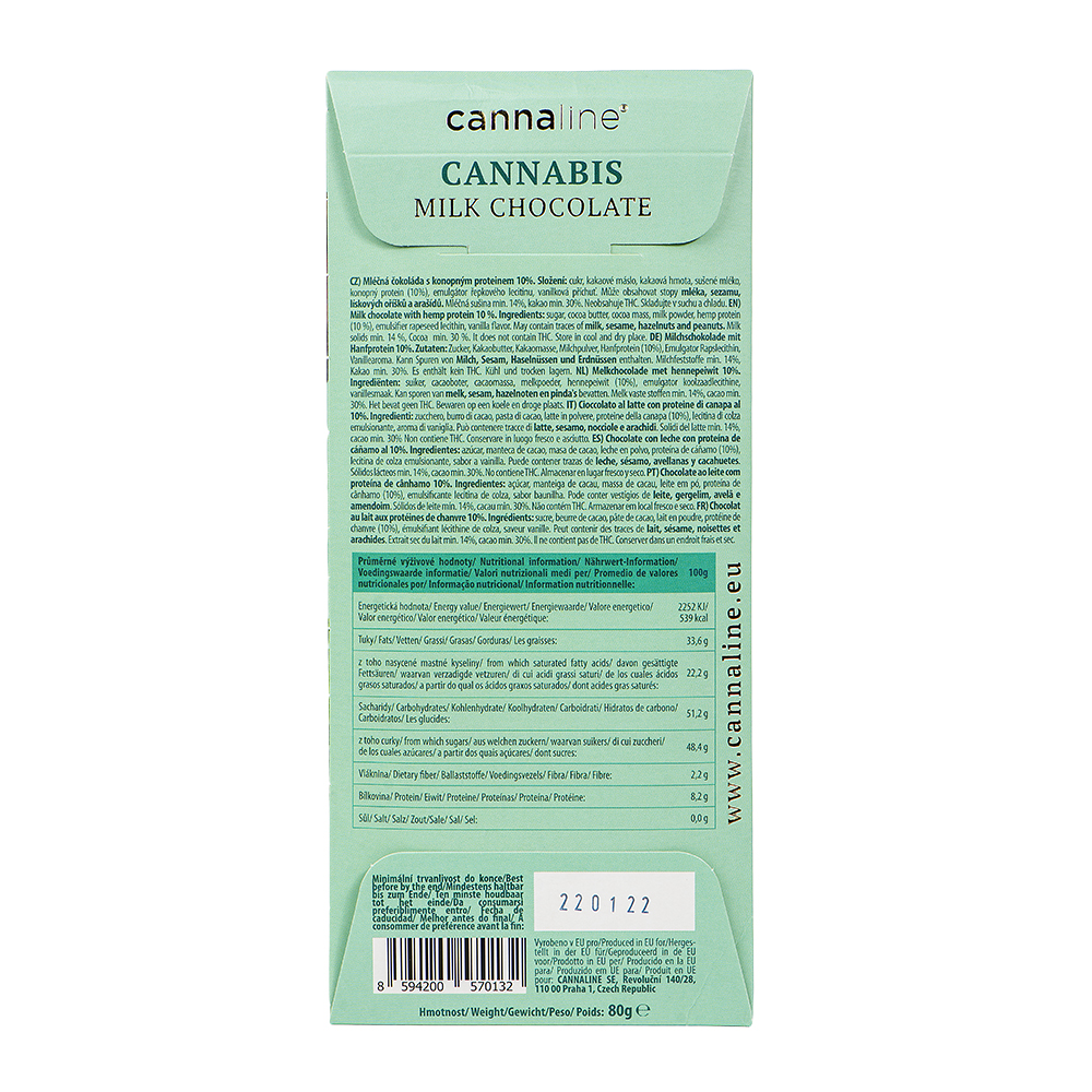 Premium Σοκολάτα Γάλακτος με Κάνναβη από την Cannaline με 30% Κακάο & 10% Πρωτεΐνη φυτικής προέλευσης
