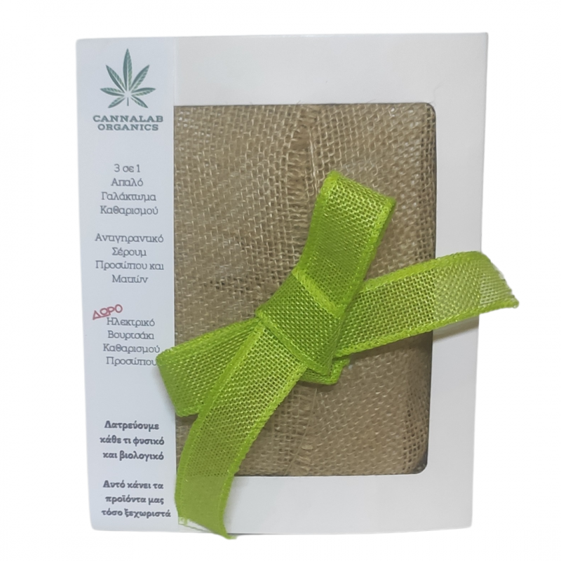 Το σετ Περιποίησης και Θρέψης Προσώπου και Ματιών της Cannalab Organics περιλαμβάνει το Serum Αντιγήρανσης Πολλαπλής Δράσης Προσώπου και Ματιών , το 3 σε 1 Απαλό Γαλάκτωμα Καθαρισμού και Τόνωσης και ΔΩΡΟ Ηλεκτρικό Βουρτσάκι Καθαρισμού Προσώπου.