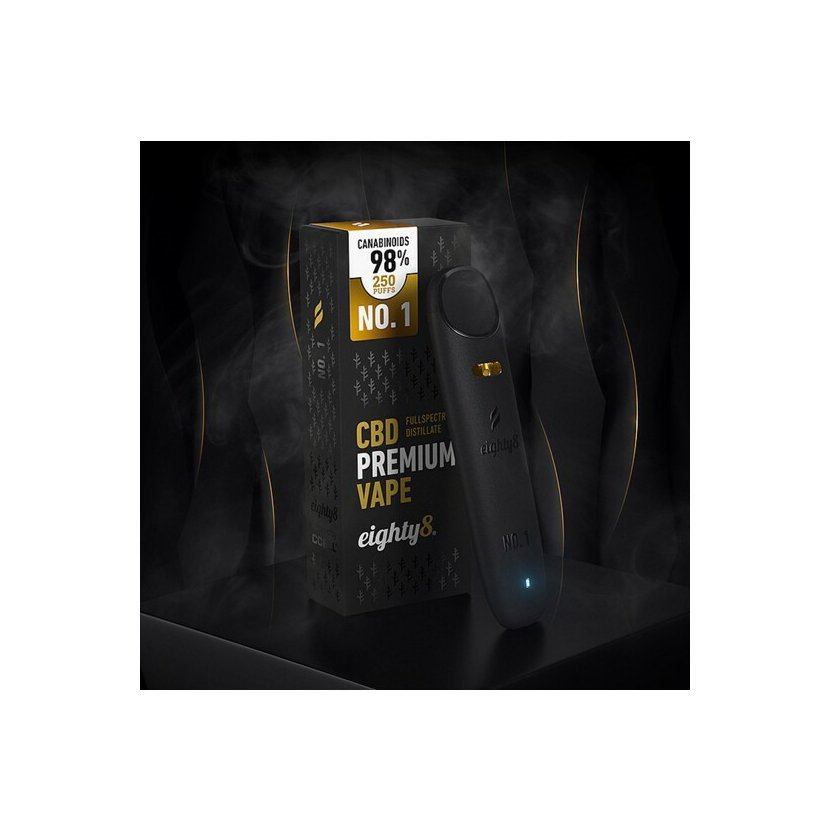 Το μεγαλύτερο επίτευγμα της Eighty8 είναι το Νo.1 ηλεκτρονικό τσιγάρο μιας χρήσης, το οποίο είναι κυριολεκτικά γεμάτο με κανναβιδιόλη. Δεν ήταν εύκολο να δημιουργηθεί μια τόσο ισχυρή συγκέντρωση λόγω της στερεοποίησης του εκχυλίσματος κατά την παραγωγή, αλλά τελικά η Eighty8 κατάφερε να δημιουργήσει ένα μοναδικό μείγμα με 98% κανναβιδιόλη.
