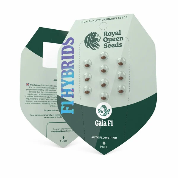 Οι σπόροι Gaia F1 παρέχουν μια γρήγορη, άψογη και παραγωγική εμπειρία καλλιέργειας. Παράγοντας σχεδόν πανομοιότυπα φυτά κάθε φορά, οι καλλιεργητές δεν χρειάζεται να περιμένουν εκπλήξεις όσον αφορά στο σχήμα, το μέγεθος και τον χρόνο καλλιέργειας. Η συμπαγής φύση τους κάνει αυτά τα φυτά ιδανικά για εσωτερικούς και εξωτερικούς χώρους όλων των μεγεθών, με τα φυτά που δεν έχουν δεχθεί τεχνικές εκπαίδευσης να φτάνουν τα 70 cm και αυτά που έχουν εκπαιδευτεί να φτάνουν μόλις τα 50 cm. Παρά το μικρό τους μέγεθος, τα φυτά Gaia F1 παράγουν μεγάλες και ικανοποιητικές σοδειές ανθών γεμάτων με ρητίνη σε μόλις 10 εβδομάδες από τη στιγμή που οι σπόροι ξεπροβάλλουν από το χώμα.