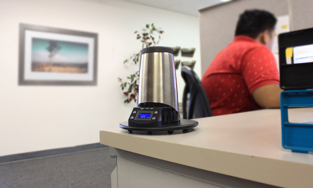 Καθώς το κεραμικό θερμαντικό υλικό προστατεύεται από ένα διπλό τοίχωμα από ανοξείδωτο χάλυβα, ο V-Tower παραμένει δροσερός εξωτερικά ώστε να μπορείτε να τον πιάσετε κατά τη διάρκεια της άτμισης. Στο εσωτερικό του vaporizer είναι ο θάλαμος περιβαλλόμενος από μη τοξική μόνωση που χωρίζει το θερμαντικό στοιχείο από το υλικό. Η κρυστάλλινη οθόνη LCD με μπλε φωτισμό είναι ευανάγνωστη και επιτρέπει την εύκολη ρύθμιση θερμοκρασίας.